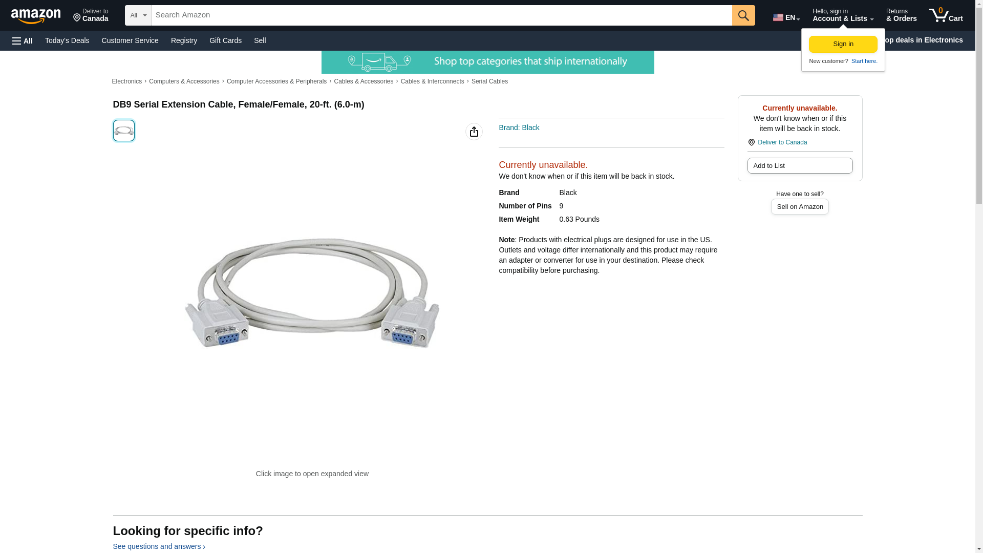 | Feature | DB9 Serial Extension Cable, Female/Female, 20-ft. (6.0-m) |
