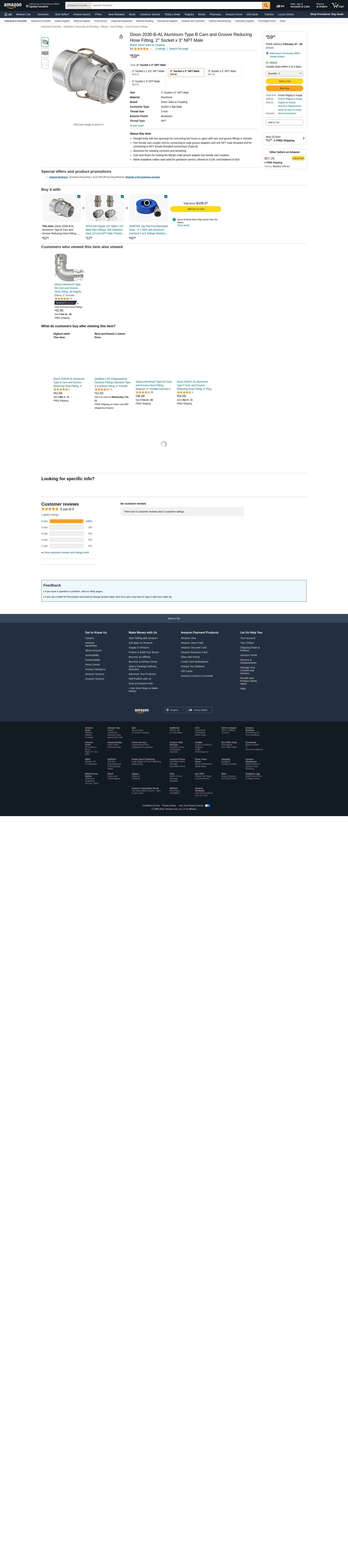 Dixon 2030-B-AL Aluminum Type B Cam and Groove Reducing Hose Fitting, 2" Socket x 3" NPT Male