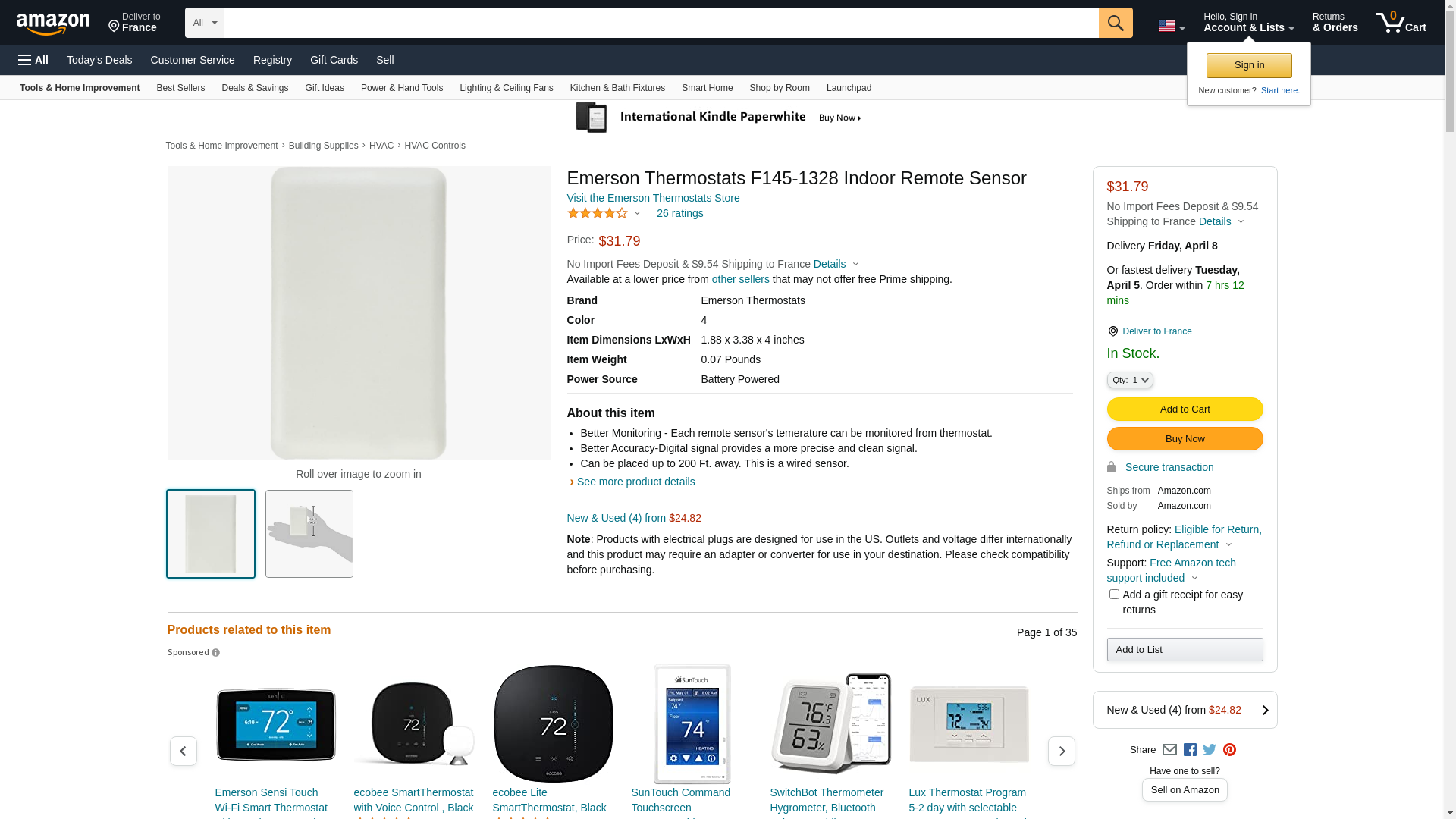 Emerson Thermostats F145-1328 Indoor Remote Sensor
