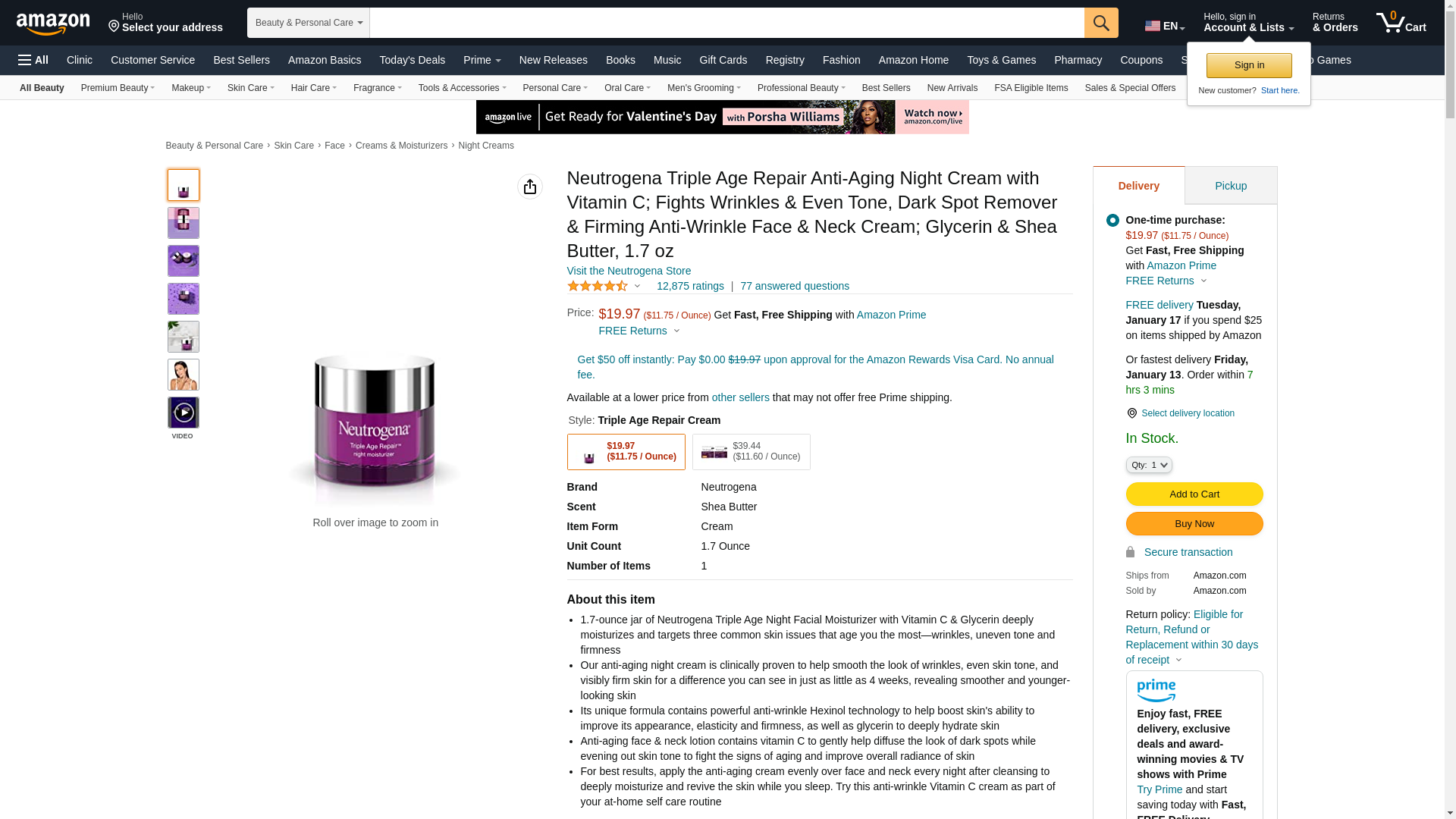 Neutrogena Triple Age Repair Anti-Aging Night Cream with Vitamin C; Fights Wrinkles & Even Tone, Dark Spot Remover & Firming Anti-Wrinkle Face & Neck Cream; Glycerin & Shea Butter, 1.7 oz: Maxedbuy.com