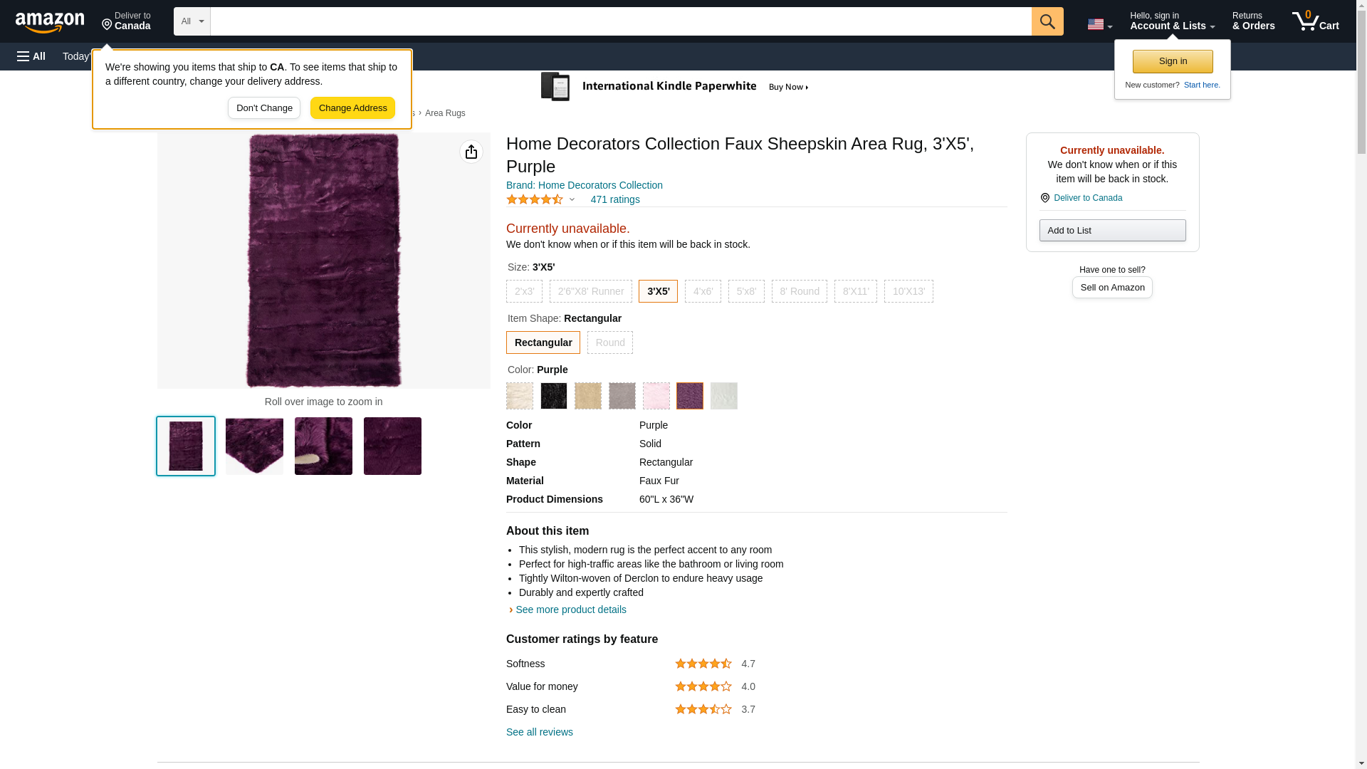 Home Decorators Collection Faux Sheepskin Area Rug, 3'X5', Purple