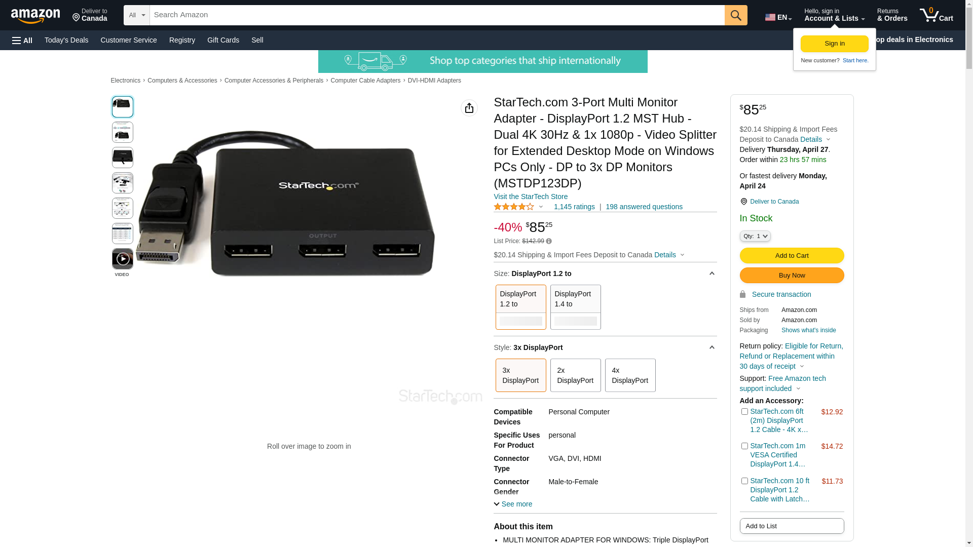 Startech Add 3 Displayport Output Ports To Your Computer, Through A Single Displayport Ou by StarTech