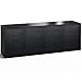 Contemporary Minimalist The light look and feel of tall grasses are finely set in a horizontal textured pattern. Black oak with black glass top and black feet work in unison creating the cabinet's hi-tech facade. Engineered to Perform The C-frame is a unique aluminum chassis designed to provide a strong and flexible furniture platform. The expertly finished furniture panels are attached to the aluminum structure to create cabinets in various styles. While the end appearance is similar to that of typical furniture the internal chassis permits a wide variety of bolt-on options and accessories. Features: Flexibility of infinite vertical adjustment Designed to enhance sonic performance by isolating audio/video components from vibration Open architecture allows for superior component venting and simple cable management Modular stackable concept allows easy adjustment and retrofitting as need change Infinitely adjustable black interior shelves Soft-close door dampeners May be mounted to the wall with the wall mounting kit (sold separately) Accessories provide additional storage options and functionality Specifications Overall Dimensions (W x H x D): 85.5" x 31.25" x 21.25" Product Weight: 340 lbs Interior Dimensions (W x H x D)C-Storage Compartment: 19.75" x 27.75" x 19.5" Interior Includes: 8 Adjustable Shelves (19.75" W x 18.5" D x 0.5" Th) CapacitiesRecommended TV Size: Up to 90" Top Holds: 350 lbs Adjustable Shelf: 75 lbs