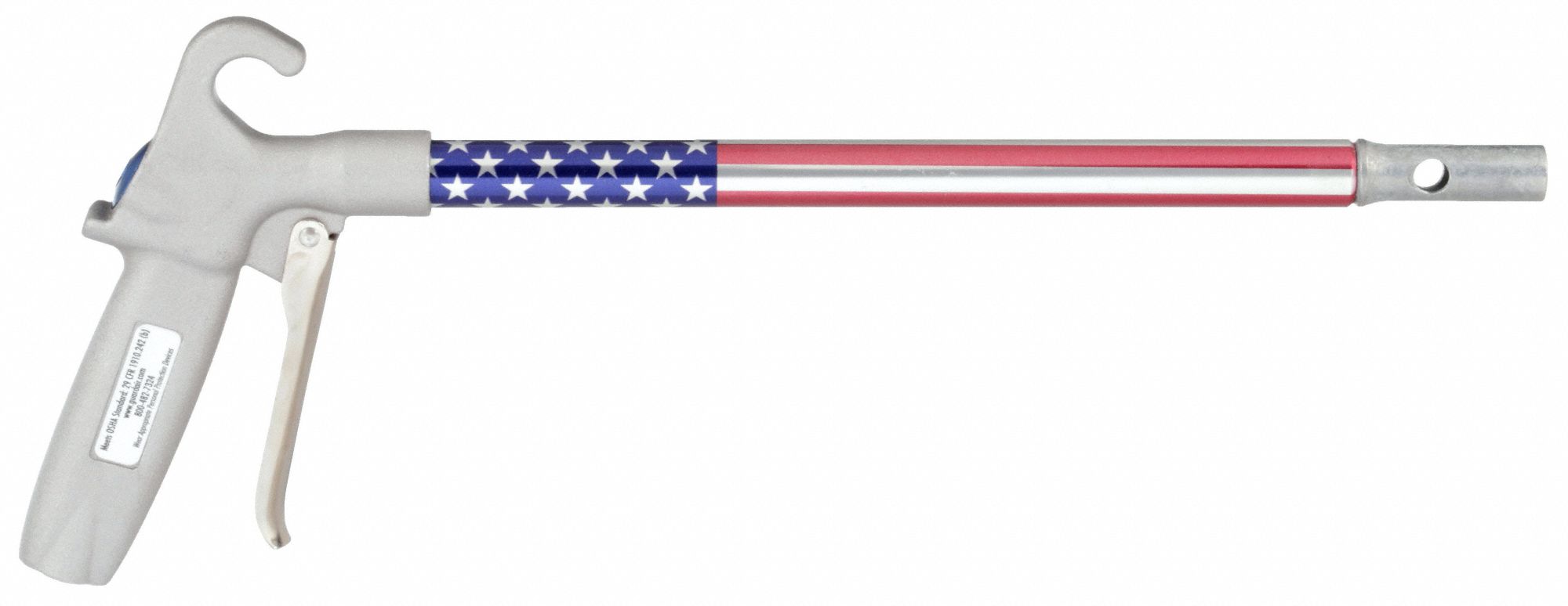 | Feature | <b>Price For:</b> Each <b>Item</b>: Air Gun <b>Max. Inlet Pressure</b>: 120 psi <b>Air Gun Product Group</b>: Air Gun <b>Air Gun Body Style</b>: Pistol Grip <b>Application</b>: Cleaning <b>Outlet Size</b>: 5/8" <b>Trigger</b>: Lever <b>Standards</b>: OSHA 1910.242(B) <b>Overall Length</b>: 16-1/2" <b>Output</b>: 2.8 LbF <b>Nozzle</b>: Venturi Safety <b>Body Material</b>: Aluminum <b>Nozzle Length</b>: 2-1/4" <b>Max. dBA</b>: 109 <b>Air Gun Inlet Size</b>: 1/4" (F)NPT |