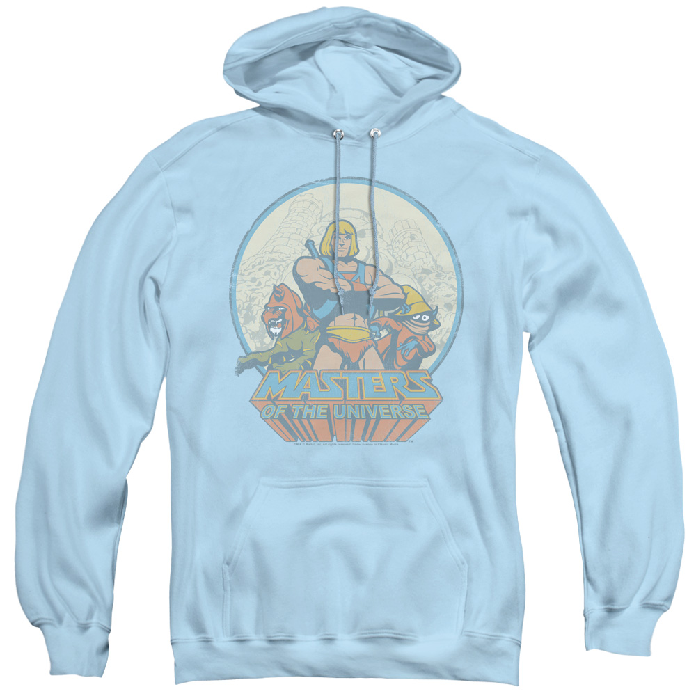 Trevco DRM267-AFTH-4 Masters of the Universe He Man & Crew Adult Pullover Hoodie, Light Blue - Extra Large