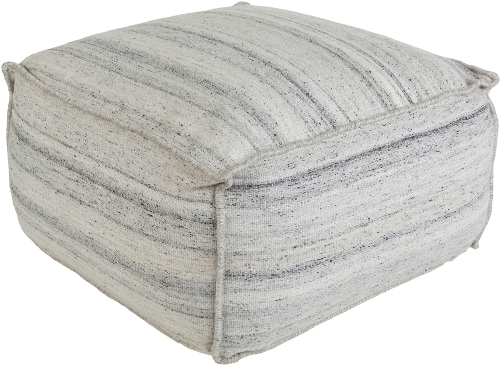 Surya BNPF004-252513 Barnsley Pouf - Ivory, Medium Gray & Charcoal - 25 x 25 x 13 in.