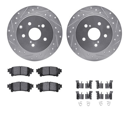 Dynamic Friction Company Rear Brake Rotors-Drilled and Slotted-Silver with 5000 Advanced Brake Pads includes Hardware 7512-76156