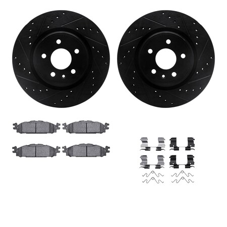 Dynamic Friction Company Front Brake Rotors-Drilled and Slotted-Black with Heavy Duty Brake Pads includes Hardware 8212-54002