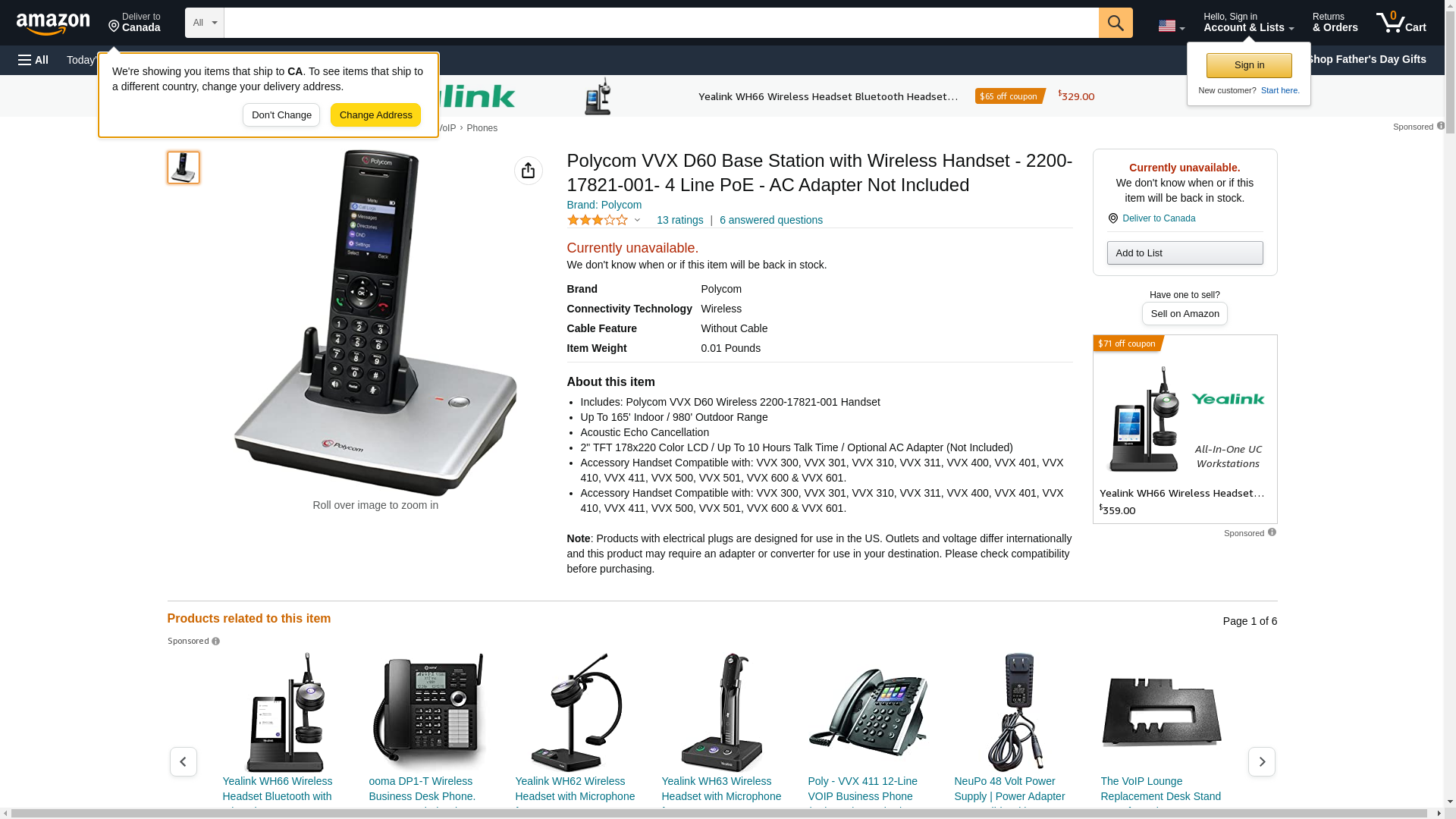 POLYCOM 2200-17821-001 - VVX D60 Base Station with Wireless Handset. 19201930 MHz DECT Wi