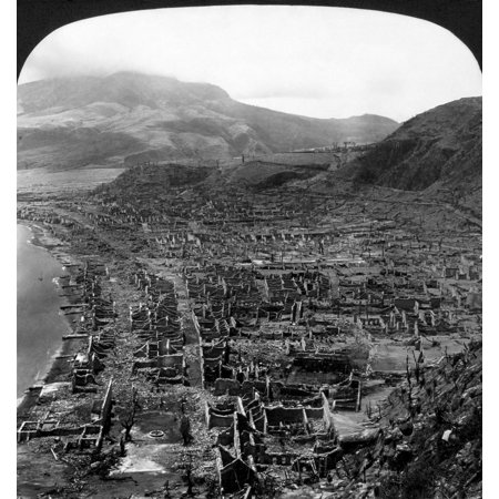Volcano Mount Pelee 1902Nmount Pelee Martinique 1902 A Contemporary Photograph Of The Ruins Of St Pierre After The Eruption Of Mount Pelee (At Left Background) On 8 May 1902 Rolled Canvas Art - (24 x