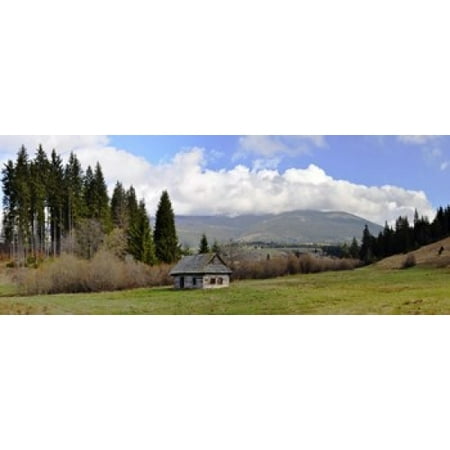 Panoramic Images Stretched Canvas Art - Old wooden home on a mountain, Slovakia - Medium 15 x 6 inch Wall Art Decor Size.