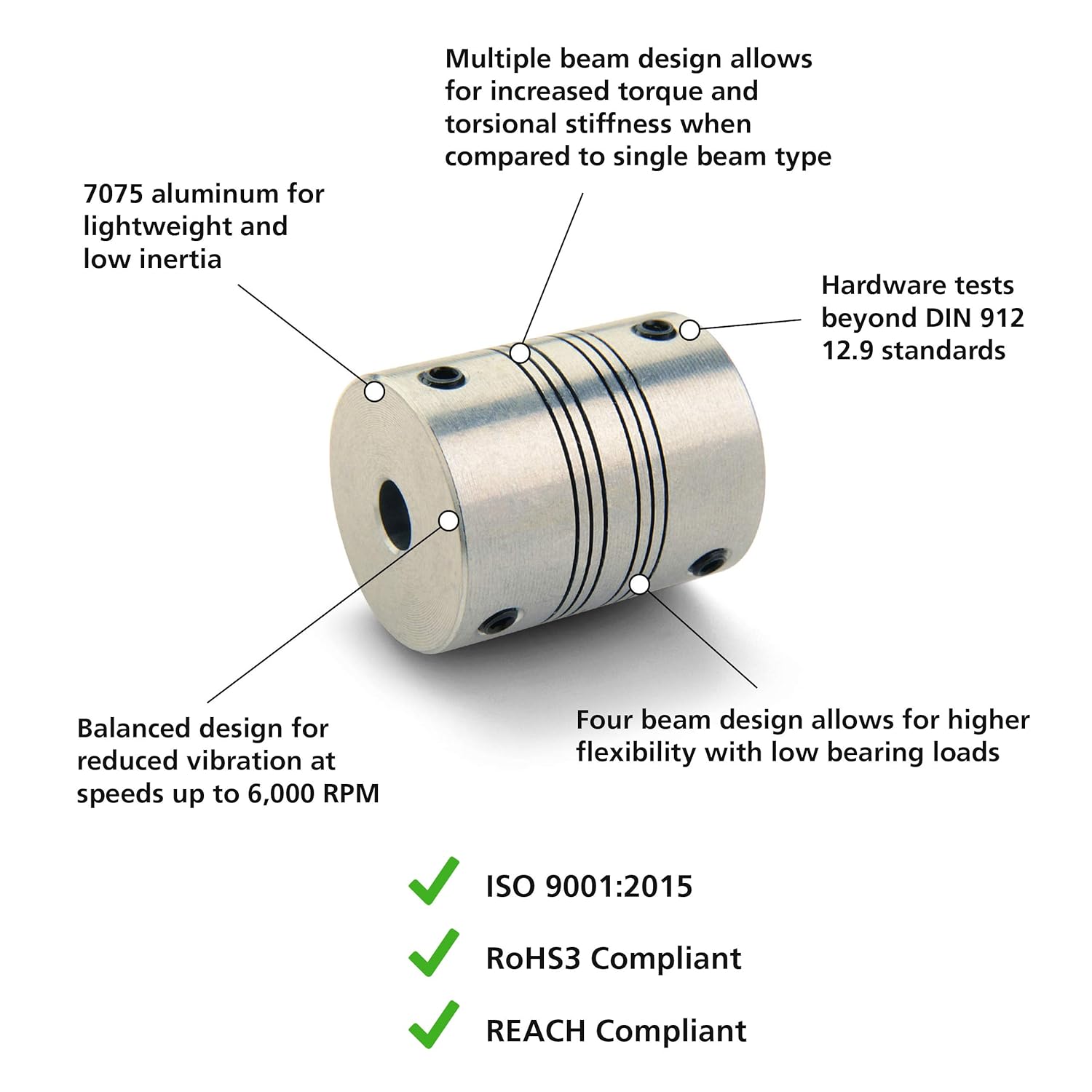 - Six beam coupling for use in angular, parallel, and axial misalignment scenarios requiring zero backlash