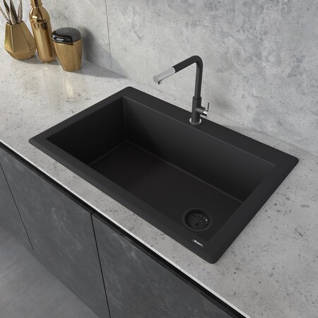 Ruvati 33 x 22 inch Drop-in Topmount Granite Composite Single Bowl Kitchen Sink - Black Galaxy - RVG1033GX