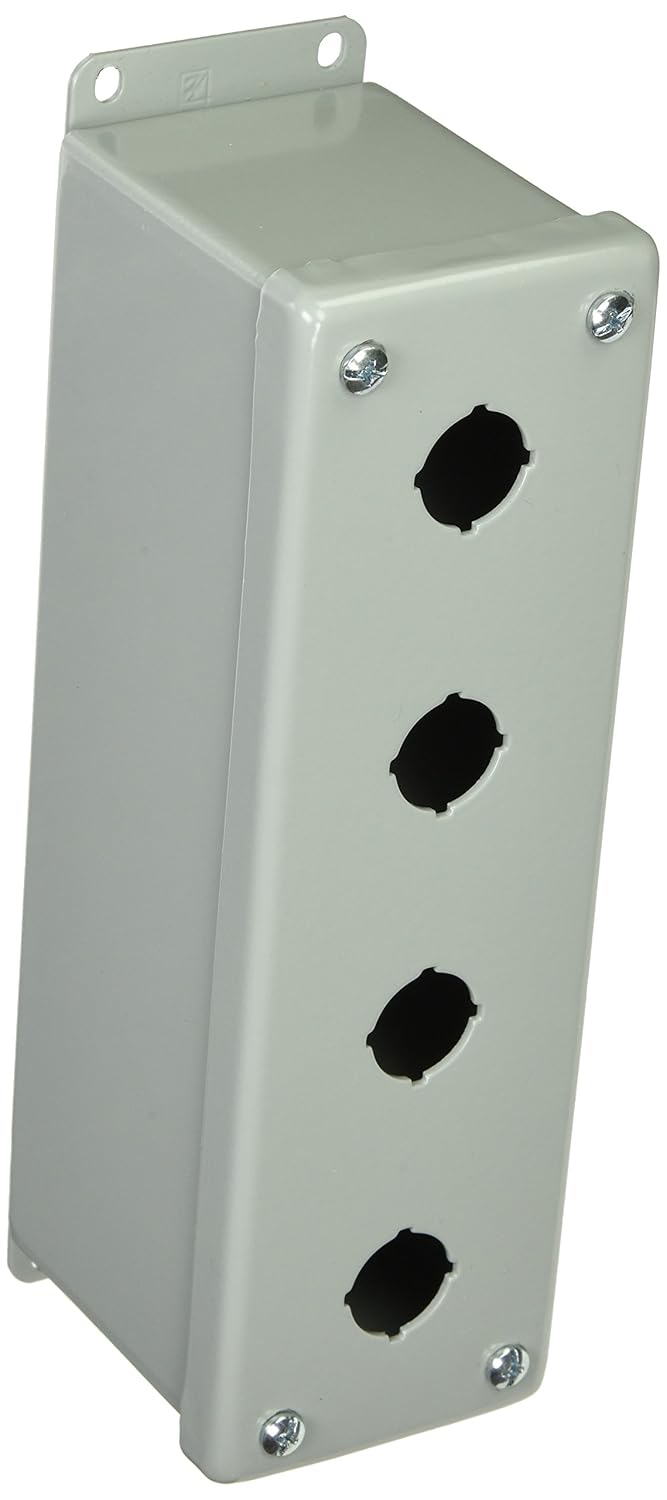 Pushbutton Enclosure, Bulletin PB1 (Pushbutton Enclosures), Size/Dims 4PB x 22.5mm, Material:/Finish Steel/Gray.