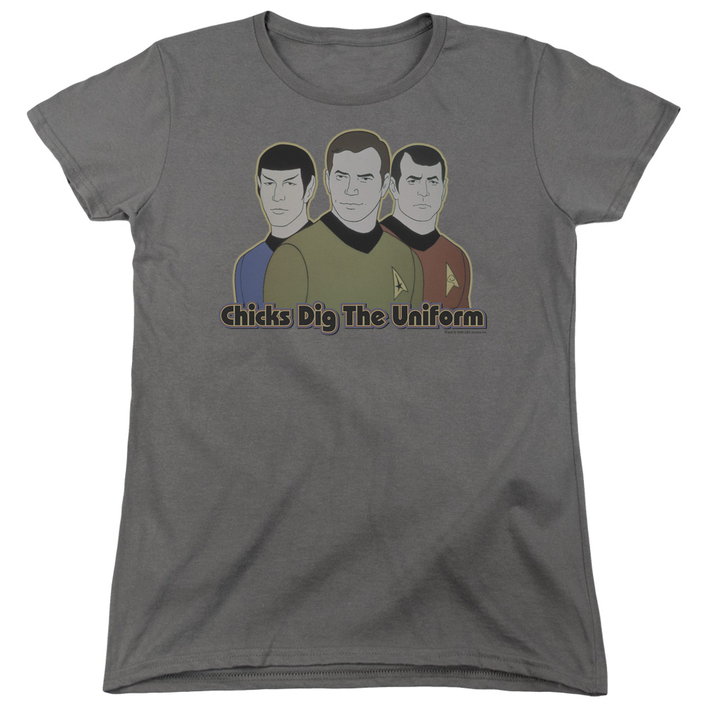 Trevco CBS338-WT-2 Star Trek & Dig It Short Sleeve Cotton Women T-Shirt, Charcoal - Medium