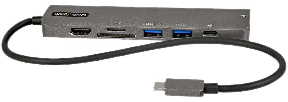 StarTech.com USB C Multiport Adapter - USB-C to 4K 60Hz HDMI 2.0, 100W PD Pass-Through, SD/MicroSD, 2-Port USB Hub, GbE, USB Type-C Mini Dock, 12" Attached Cable, Replaces DKT30CSDHPD (DKT30CHSDPD1)