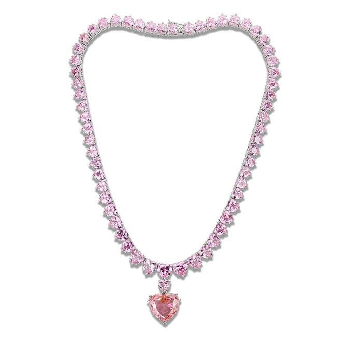 Alamode LO4705-18 Women Rhodium Brass Necklace with AAA Grade CZ in Rose - 18 in.