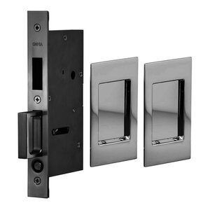 Pocket Door Hardware Collection - Small Modern Rectangle Dummy Pair Pocket Door Mortise Hardware in Polished Chrome by Omnia Hardware - 7036/PD.26 | MyKnobs