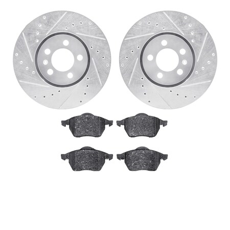 Dynamic Friction Company Front Brake Rotors-Drilled and Slotted-Silver with 3000 Series Ceramic Brake Pads 7302-74051