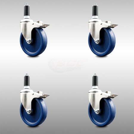 5 Inch 316SS Solid Poly Swivel 1-1/4 Inch Expanding Stem Caster Set Lock Brake