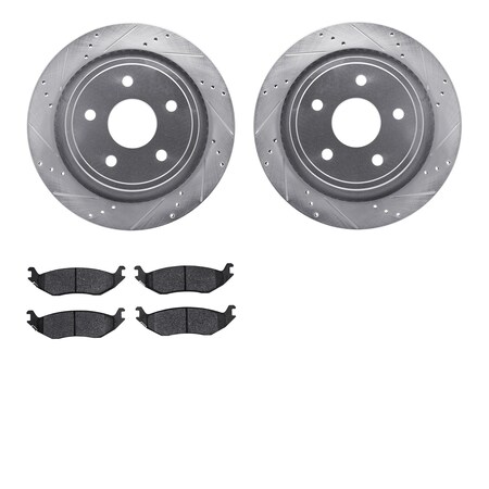 Dynamic Friction Company Rear Brake Rotors-Drilled and Slotted-Silver with 5000 Advanced Brake Pads 7502-40083