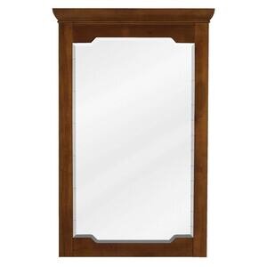A geometric frame around the beveled glass gives this Chocolate Chatham mirror a unique look. It can transform a room with its contoured top and subtly carved details. This mirror works perfectly with small vanities. Coordinates well with transitional style vanity collections. Overall measurements: 22" W x 1-1/2" D x 34" H. Made of furniture-grade hardwood.