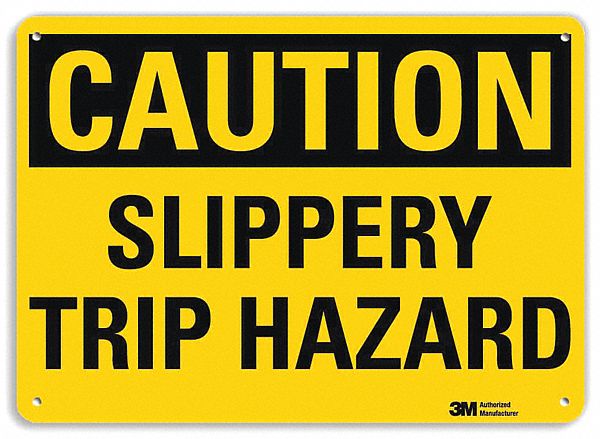Safety Sign, Vertical Rectangle, Number of Printed Sides 1, English, Sign Format Traditional OSHA, Sign Legend Slippery Trip Hazard, Sign Legend Background Color Yellow, Sign Legend Style Text