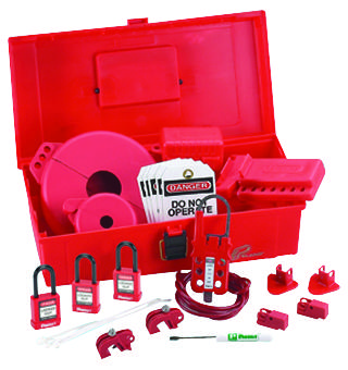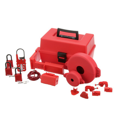 | Feature | Lockout/tagout kit containing devices used by maintenance and repair personnel |