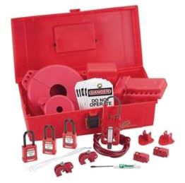- Lockout/tagout kit containing devices used by maintenance and repair personnel