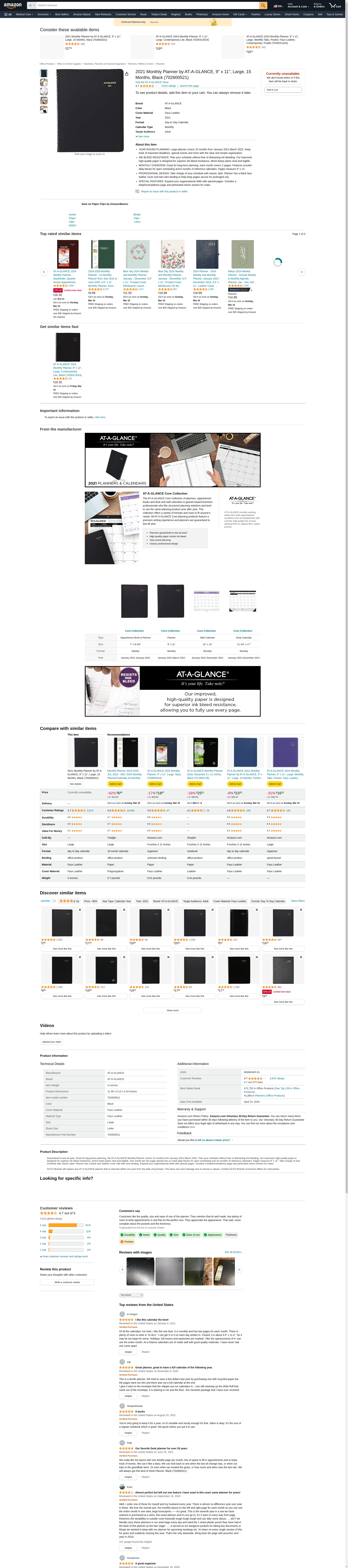 2021 Monthly Planner by AT-A-GLANCE, 9" x 11", Large, 15 Months, Black (702600521)