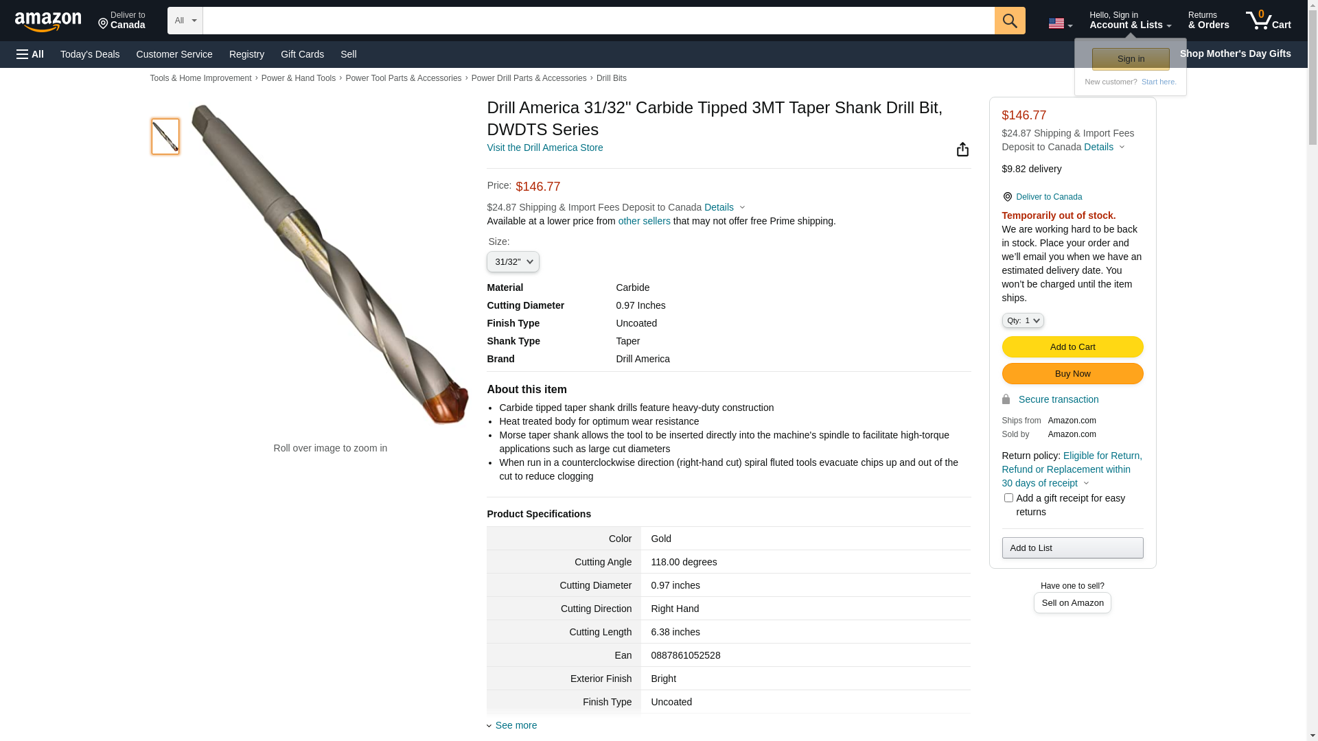 Drill America 31/32" Carbide Tipped 3MT Taper Shank Drill Bit, DWDTS Series