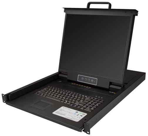 This StarTech <b>RKCONS1908K</b> rack-mount KVM console provides complete keyboard, monitor and mouse control for eight computers. The rack-mount console installs into 1U of rack space, offering a space-efficient solution for complete console control.</p><p><b>Maximize your IT budget, minimize your hassle</b><br />This 8-port KVM switch provides all the essential controls you'll need to manage your server room at a low cost. The console features a built-in touchpad, keyboard for intuitive control and an LCD display that supports resolutions up to 1280x1024. </p><p><b>Maximize your screen space</b><br />This versatile rack-mount LCD console has a 19 in. screen. The increased screen space allows you to run multiple applications on the same screen, increasing your productivity.</p><p><b>Clutter-free monitoring</b><br />The console slides out from 1U of rack space, enabling you to easily monitor and control eight servers and even more if connecting through a KVM switch. The rackmount VGA console features a handle for easy sliding in and out of the server rack, keeping your area organized and clutter-free.</p><p><b>Hassle-free system integration</b><br />The rackmount LCD features an 8-port KVM module, which enables you to connect it directly to eight servers. You can also connect to additional servers by connecting to KVM switches in a cascaded (daisy-chained) configuration. The KVM module offers the flexibility you need for easily integrating the console into your existing server infrastructure.</p><p><b><ins>Applications</b></ins><br />Control a single system, or dozens of KVM-connected computers<br />Improve the internal space efficiency of your server cabinet<br />Manage cabinet-mounted servers and KVM switches</p>