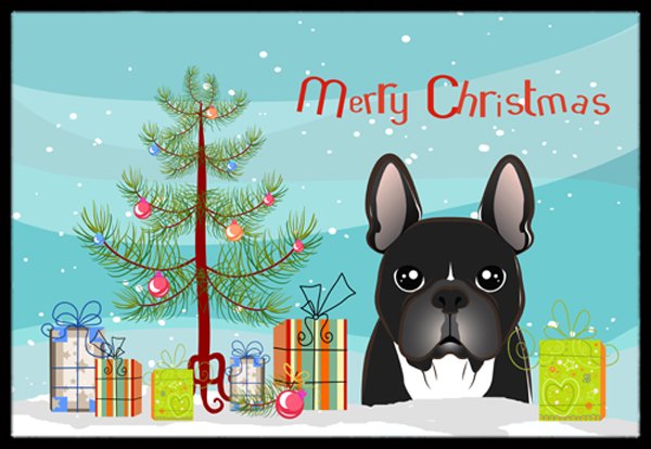 Caroline's Treasures BB1599MAT Christmas Tree and French Bulldog Doormat 18x27 Front Door Mat Indoor Outdoor Rugs for Entryway, Non Slip Washable Low Pile, 18H X 27W