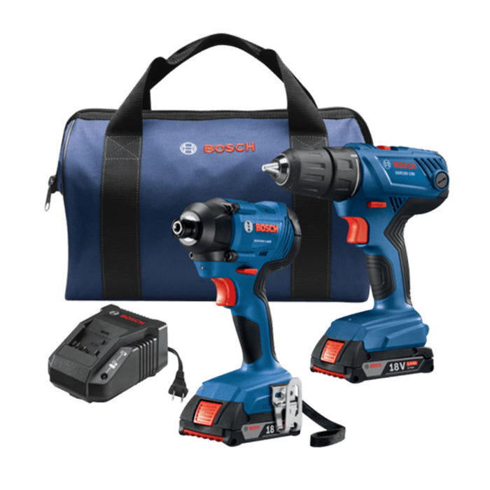 - COMBO KIT: The Bosch GXL18V 26B22 is a reliable compact combo kit that includes 2 18V tools (impact driver and drill/driver) designed to fit in tight areas and to provide Pro performance, along with 2 2.0 Ah 18V batteries and a charger