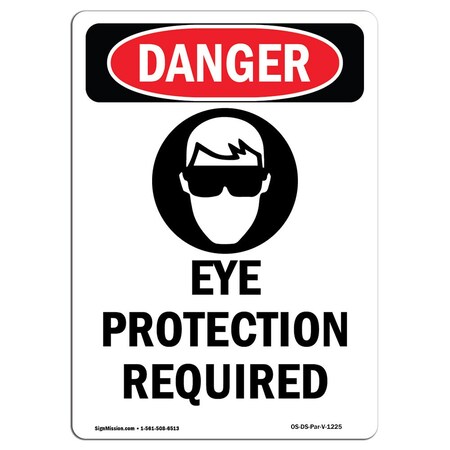 OSHA Danger Sign, Eye Protection Required, 5in X 3.5in Decal