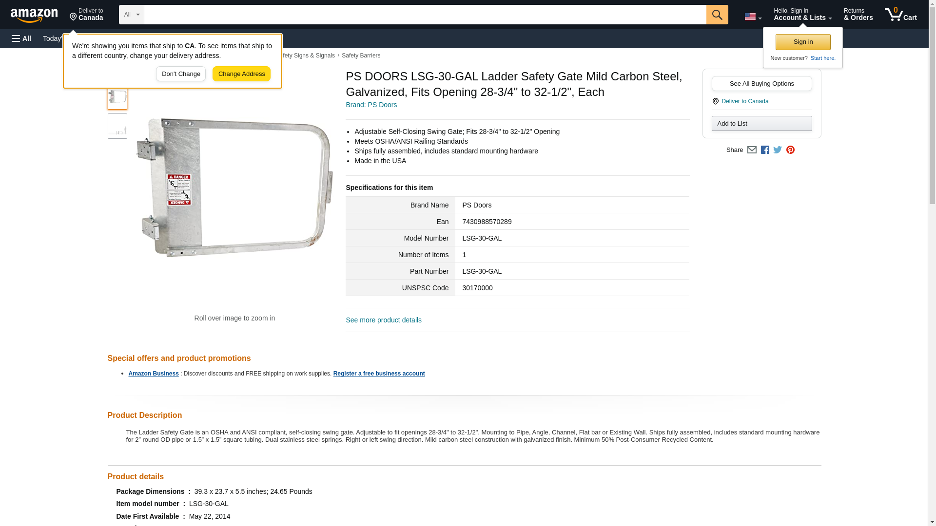 PS DOORS LSG-30-GAL Ladder Safety Gate Mild Carbon Steel, Galvanized, Fits Opening 28-3/4" to 32-1/2", Each