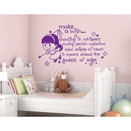 Make a Wish Wall Decal - kids wall decal, sticker, mural vinyl art home decor, quotes and sayings - 2733 - Pink, 31in x 20in
