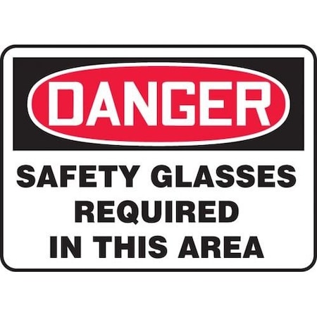 Accuform MPPA001XV Adhesive Dura-Vinyl Sign, Legend "Danger Safety Glasses Required in This Area", 7" Length x 10" Width x 0.006" Thickness, Red/Black on White