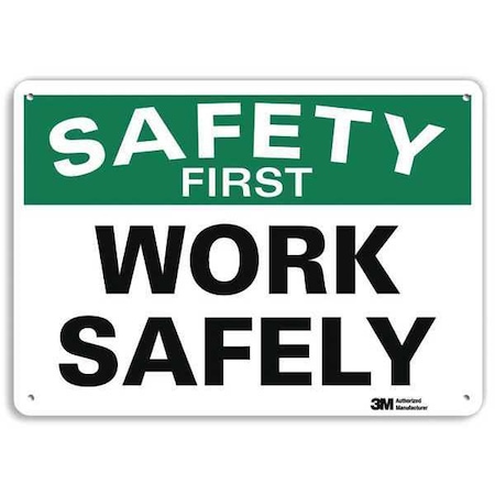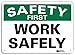 Safety Sign, Horizontal Rectangle, Number of Printed Sides 1, English, Sign Format Traditional OSHA, Sign Legend Work Safely, Sign Legend Background Color White, Sign Legend Style Text