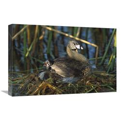 Global Gallery GCS-453308-1624-142 16 x 24 in. Pied-Billed Grebe Parent with Calling Chick on Nest, Rio Grande Valle