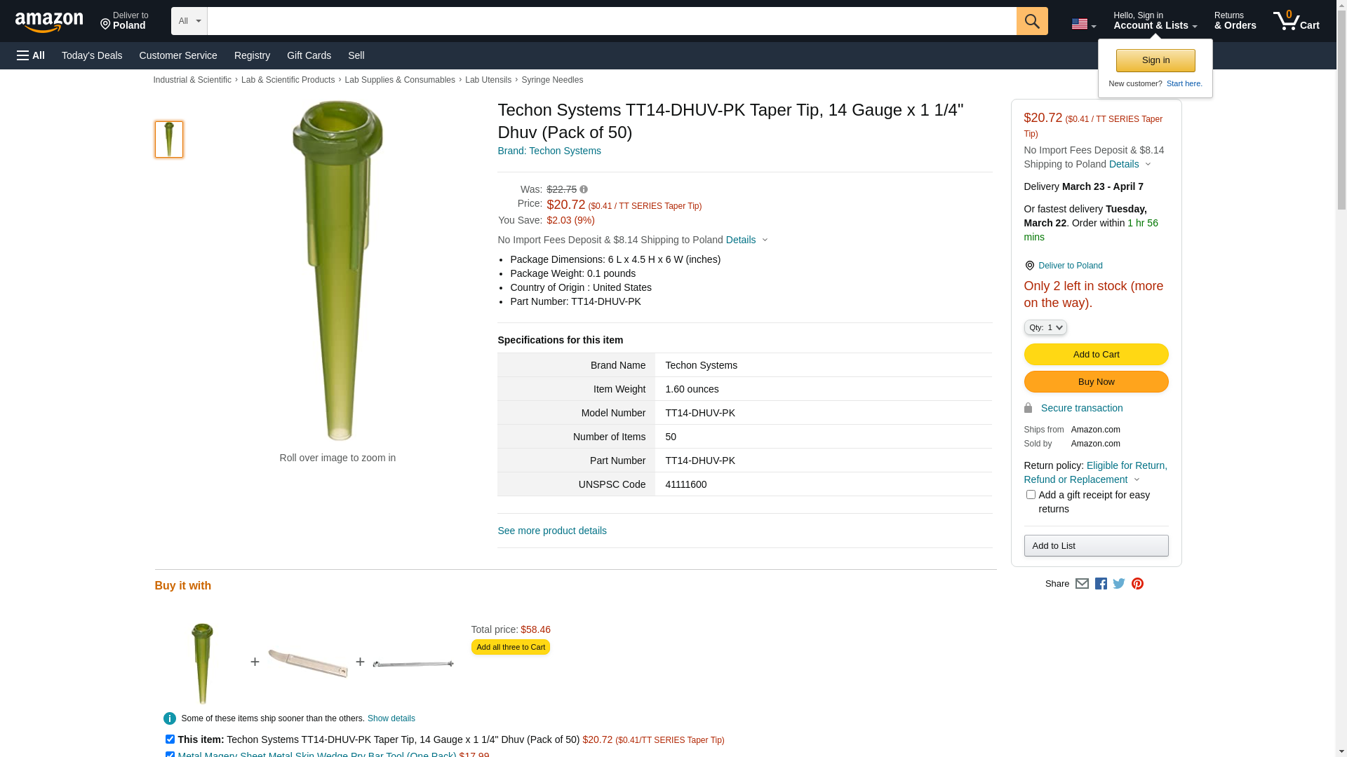 Techon Systems TT14-DHUV-PK Taper Tip, 14 Gauge x 1 1/4" Dhuv (Pack of 50)