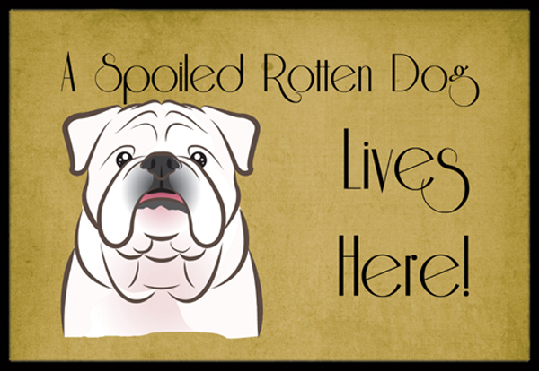 Carolines Treasures BB1468MAT White English Bulldog Spoiled Dog Lives Here Indoor & Outdoor Mat, 18 x 27 in.