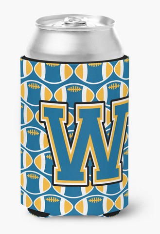 Carolines Treasures CJ1077-WCC Letter W Football Blue & Gold Can or Bottle Hugger, 0.25 x 4 x 5.5 in.