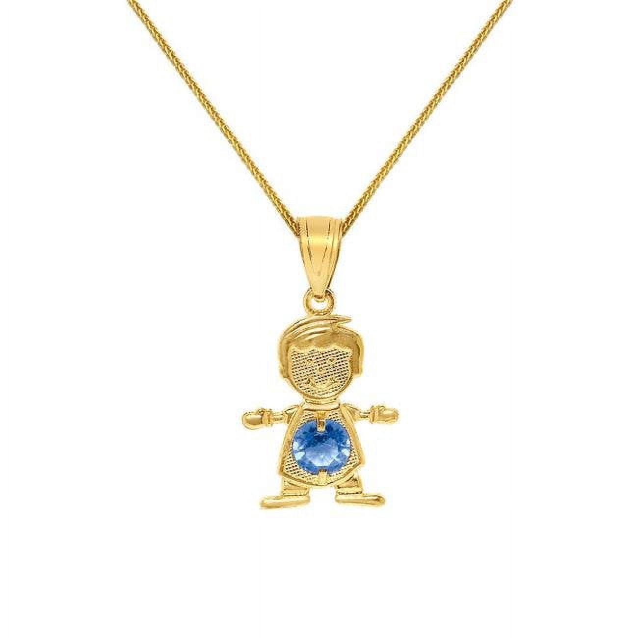 Precious Stars PT661-12-CH193-20 20 in. 14K Yellow Gold Round-Cut Cubic Zirconia December Birthstone Boy & Son Pendant w