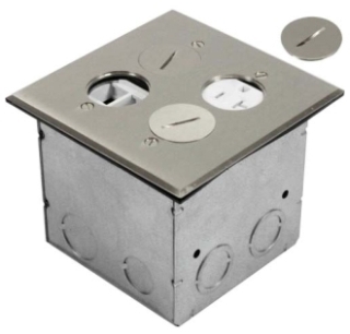 FLB-R2G-DL-SS Flr Box Rnd Plug Type,(Sqr. Plt)W/Recept.(T.R.)&(Kjh4P),Ss