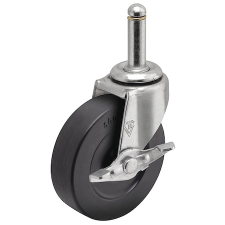 Shepherd Regent Series 2" Diameter Soft Rubber Wheel Swivel Caster with Side Brake, 7/16" Diameter x 7/8" Length Grip Ring Stem, 80 lbs Capacity, Zinc Finish