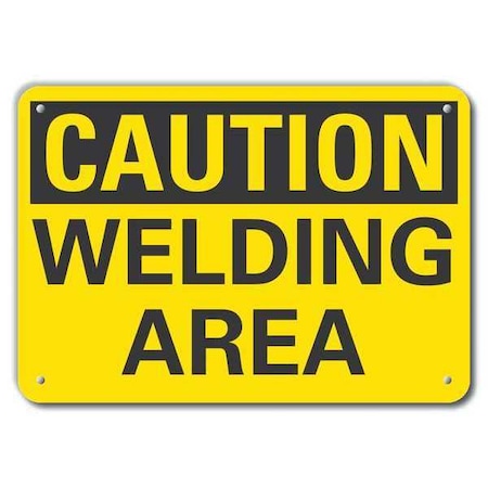 Caution Sign, Horizontal Rectangle, Number of Printed Sides 1, English, Sign Format Traditional OSHA, Sign Legend Welding Area, Sign Legend Background Color Yellow, Sign Legend Style Text