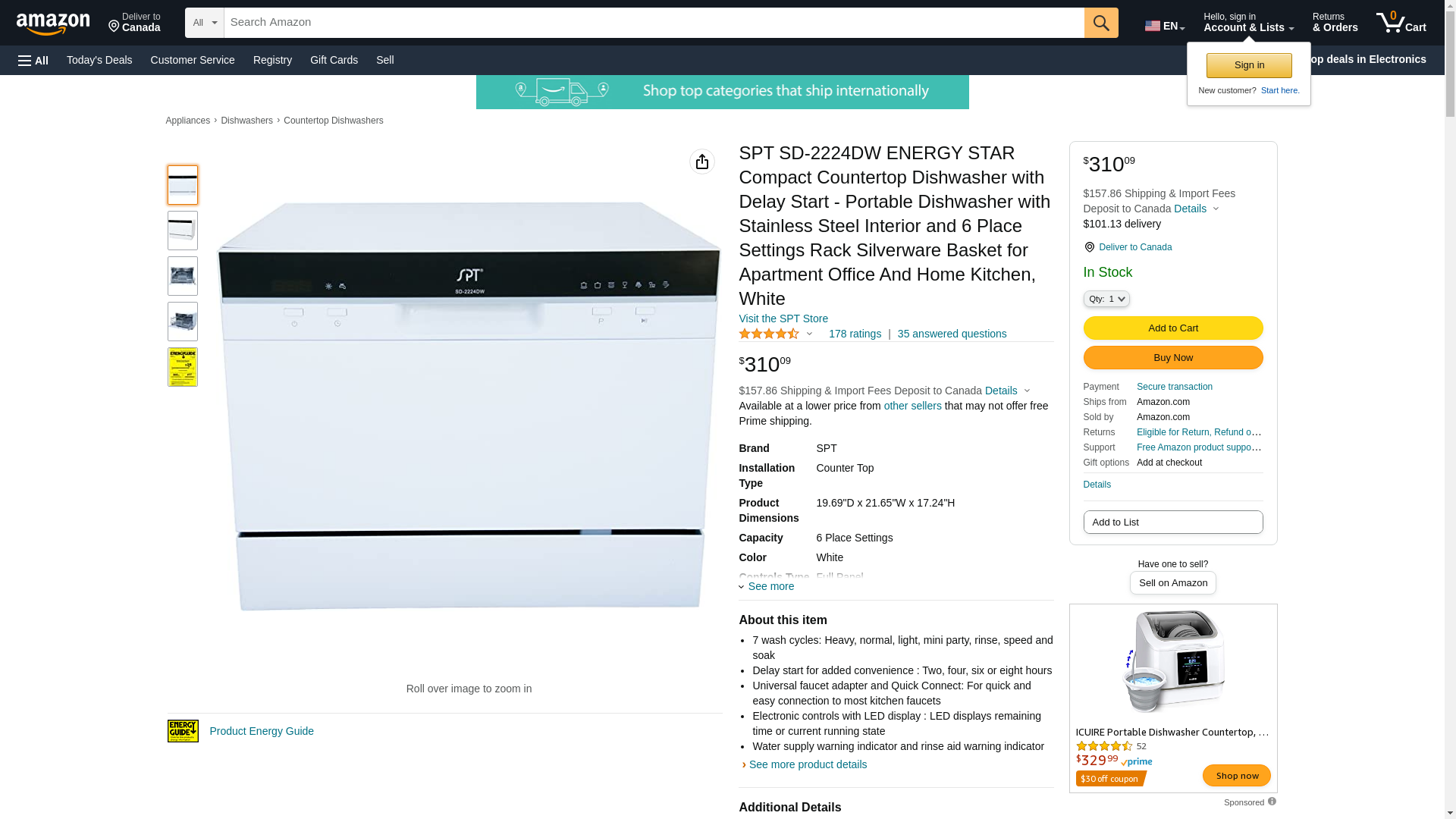SPT SD-2224DW ENERGY STAR Countertop Dishwasher with Delay Start - Portable Dishwasher with Stainless Steel Interior and 6 Place Settings for Apartment Office And Home Kitchen, White