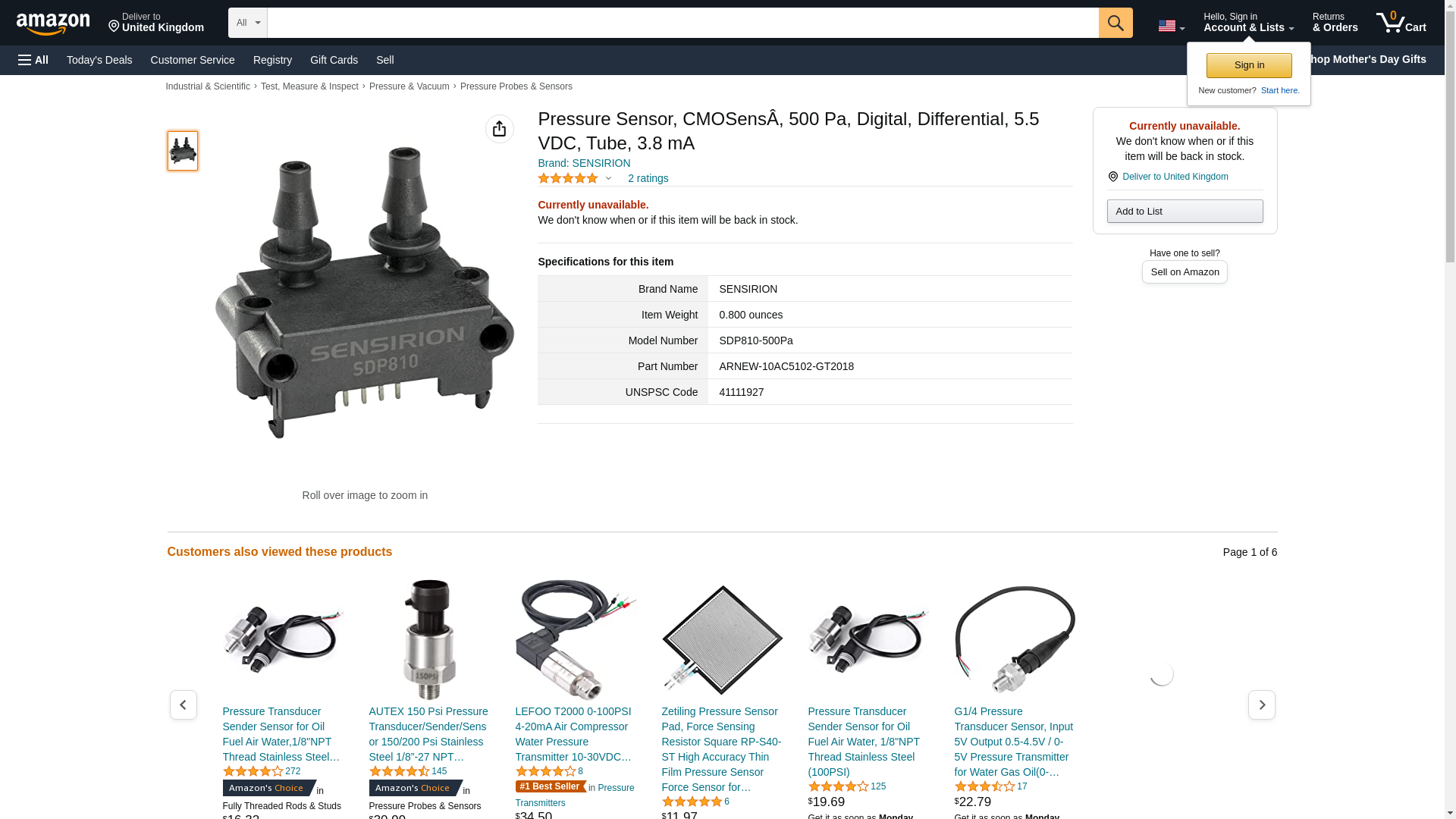 SENSIRION AG SDP810-500PA Digital Differential Pressure Sensor SDP8xx Series - 80 item(s)