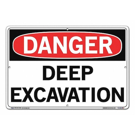 Vestil SI-D-32-D-AL-040 DEEP EXCAVATION Danger Sign, Aluminum, 0.040" Overall Size, 18.5" W x 12.5" H